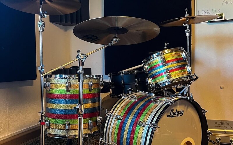 Blue Sparkle vintage Ludwig drumset with Paiste vintage cymbals